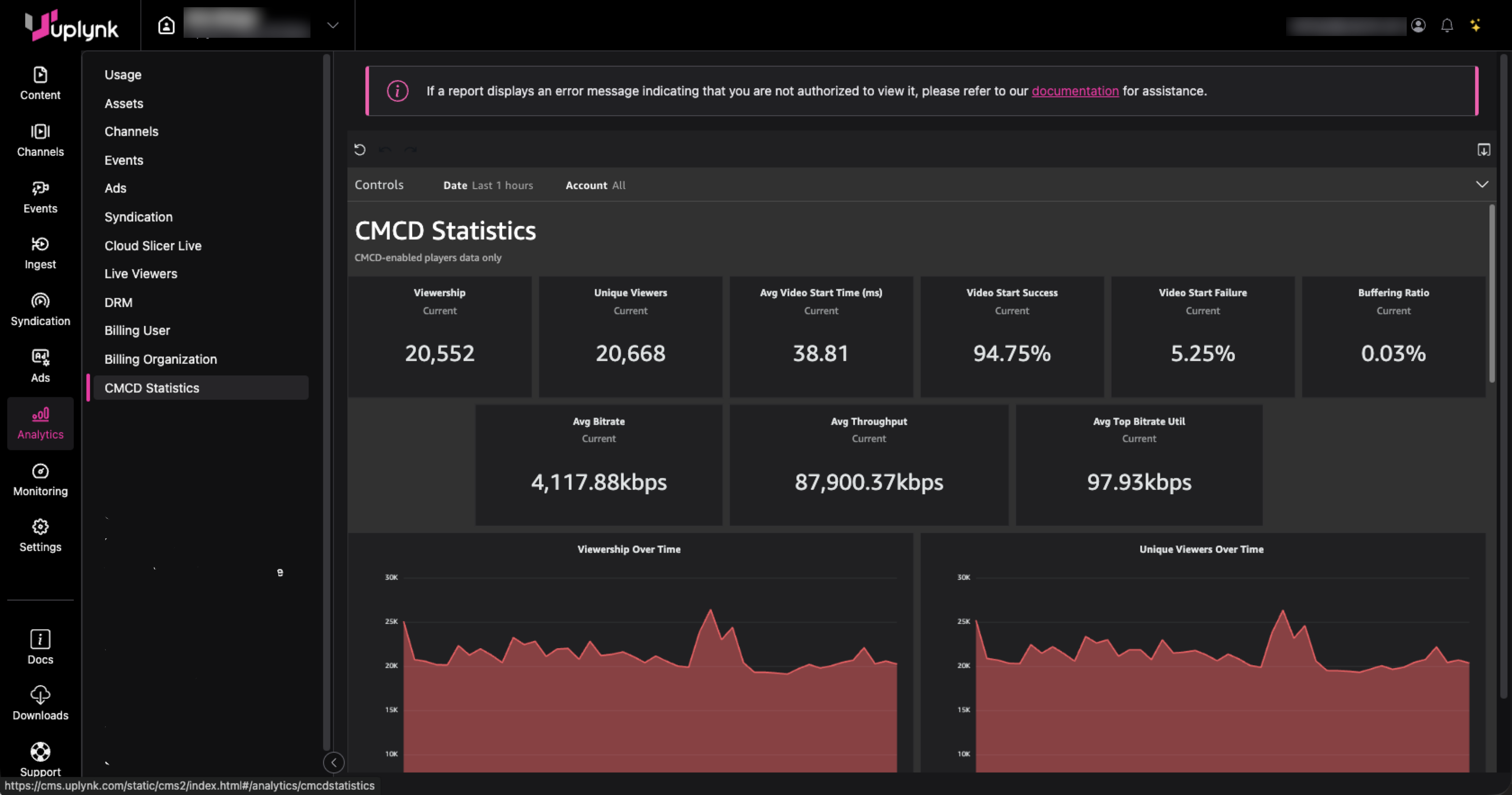 Uplynk collects CMCD information from playback clients via its internal CDN when the clients support CMCD. Roku players generally support CMCD, as do other devices. If your playback clients do not support CMCD, Uplynk will not receive this data. It is recommended that you enable CMCD on your player to take advantage of this information.