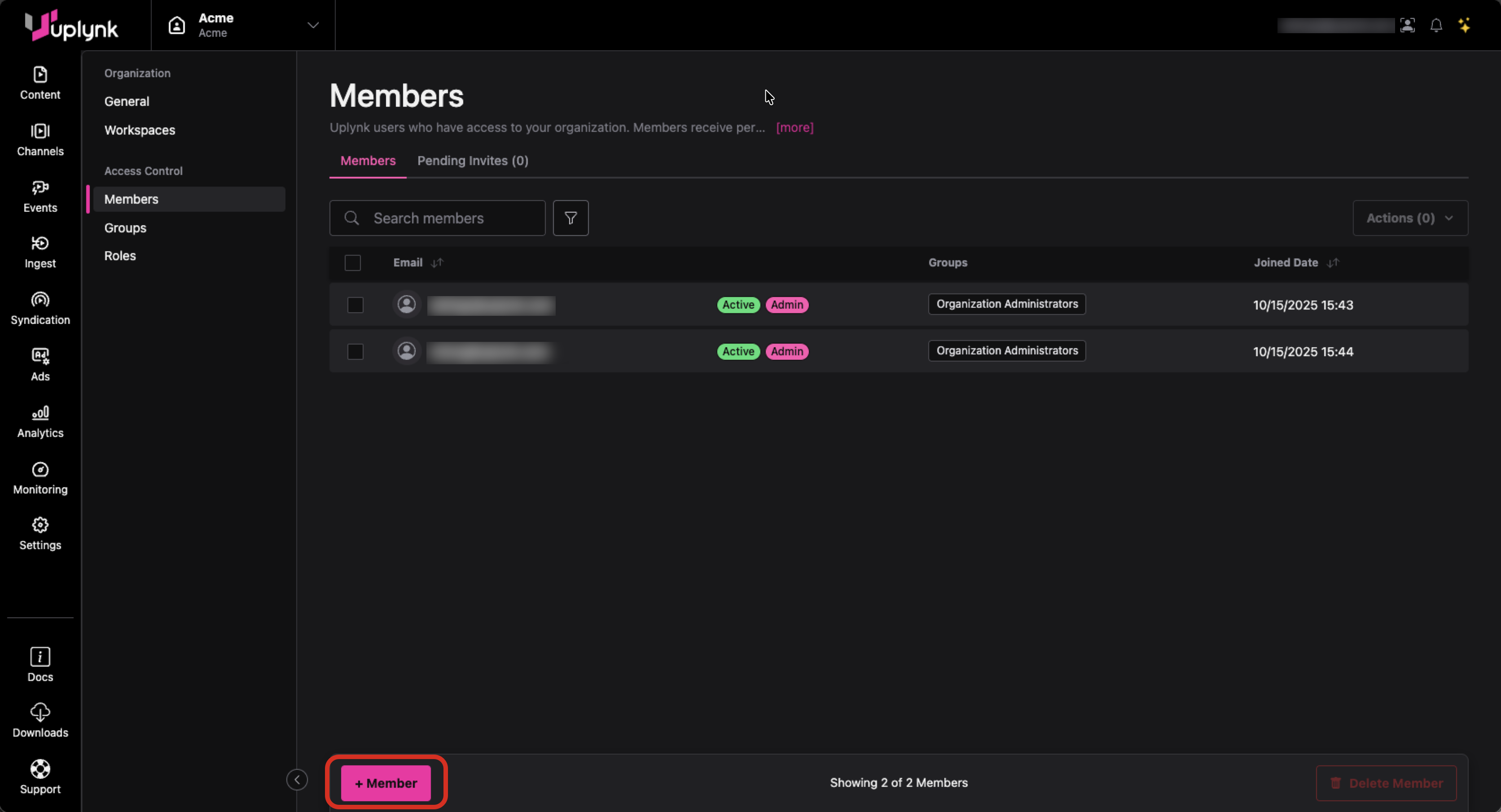Organizations are created by Uplynk Support.
