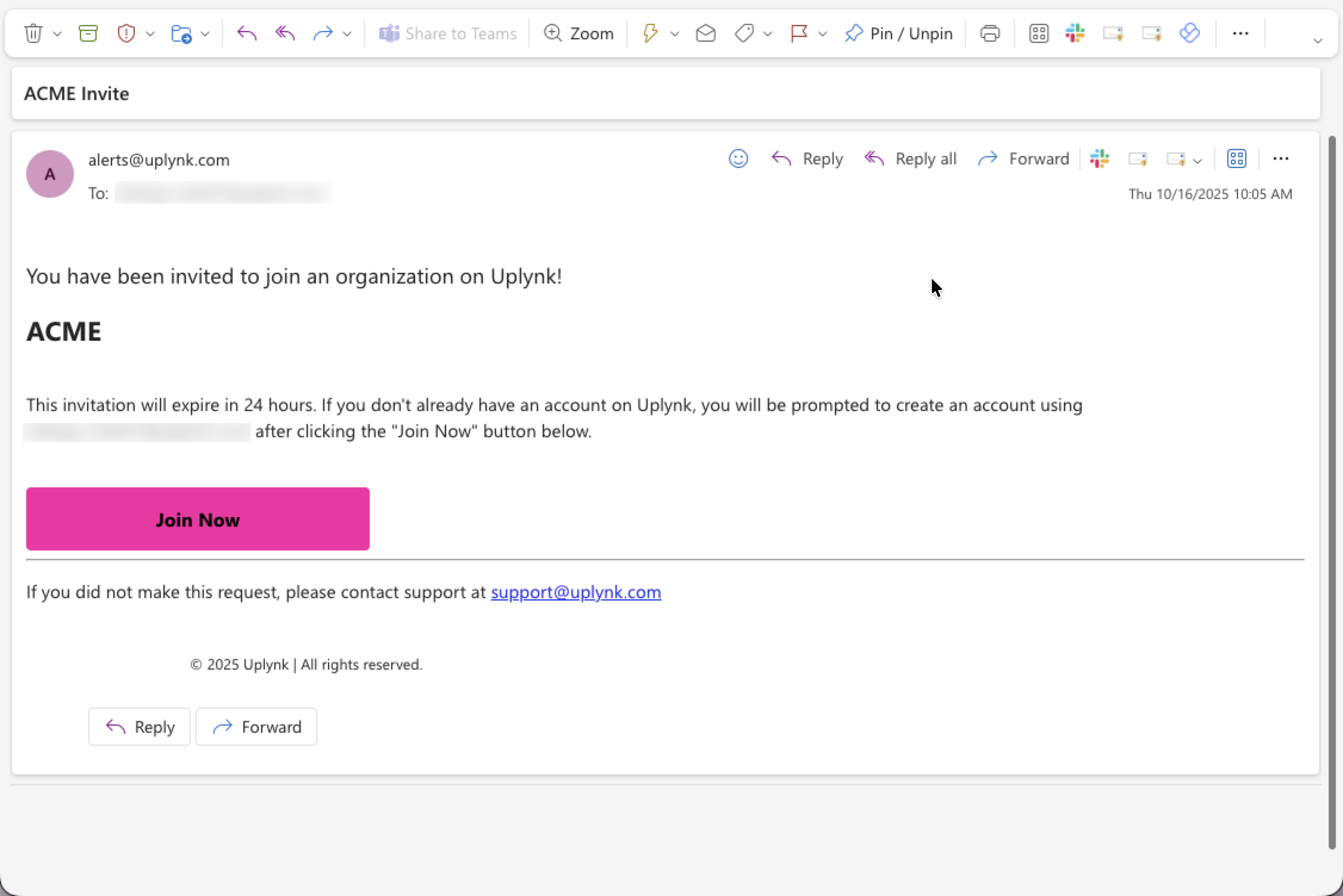 An email will be sent to the new member(s) to join the organization as shown below: