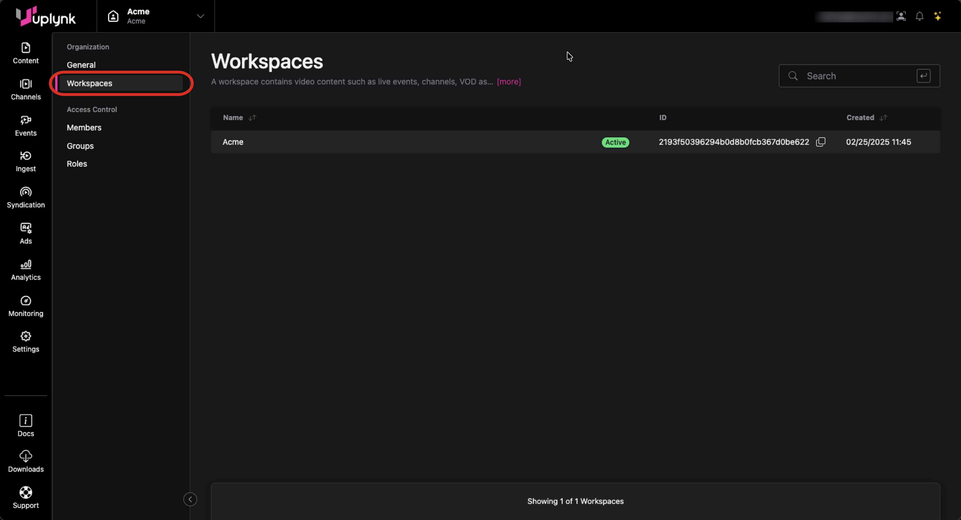 Only Uplynk can create workspaces at the present time.