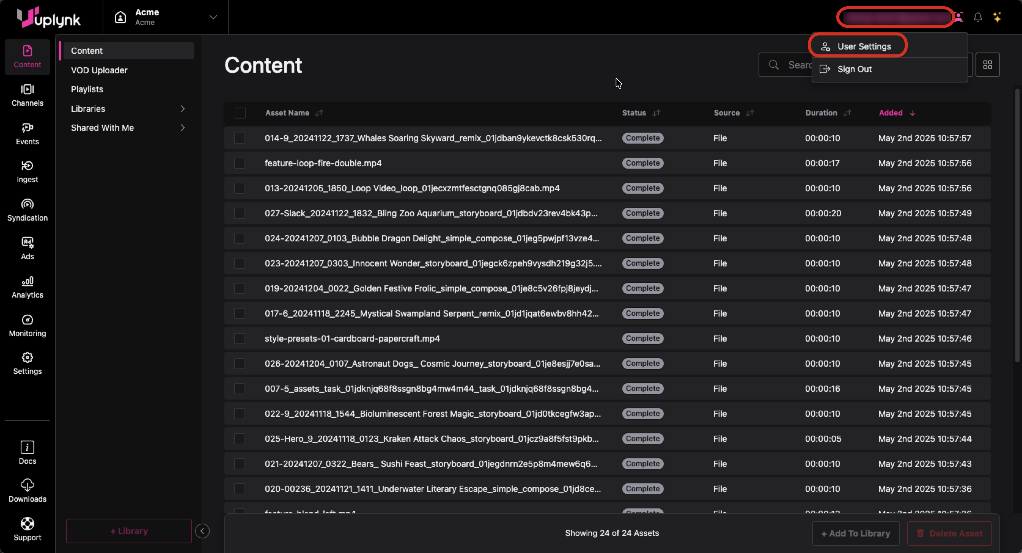 Once you switch to Accounts 2.0, any content that was previously in your personal account under legacy account management is no longer viewable. If this content needs to be migrated to Uplynk Accounts 2.0, please contact Uplynk Support.
